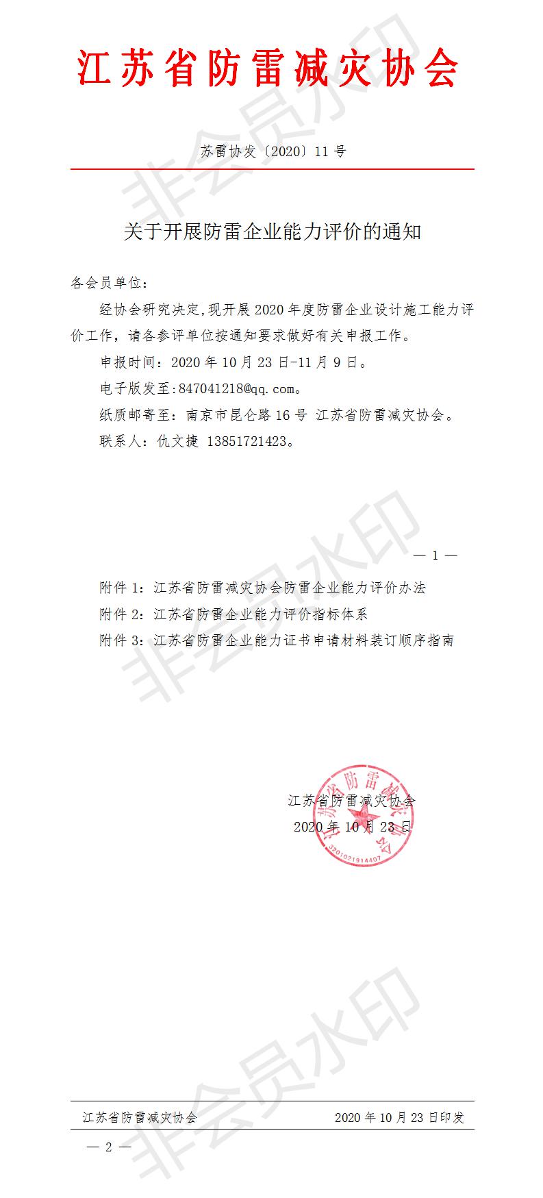 关于开展防雷企业能力评价的通知